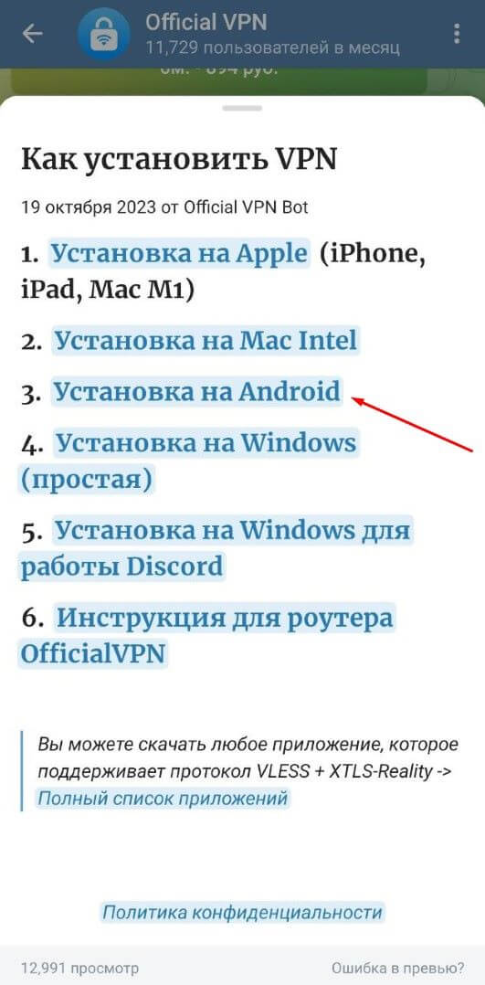 Загрузка и установка приложения Official VPN производится напрямую из официального каталога AppStore. Ссылку на страницу с приложением можно получить в телеграм-боте сервиса или перейти по кнопке ниже.
